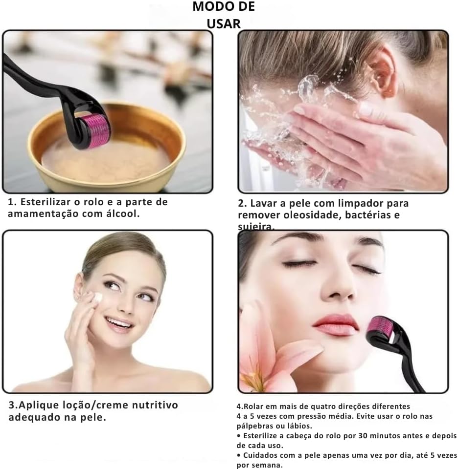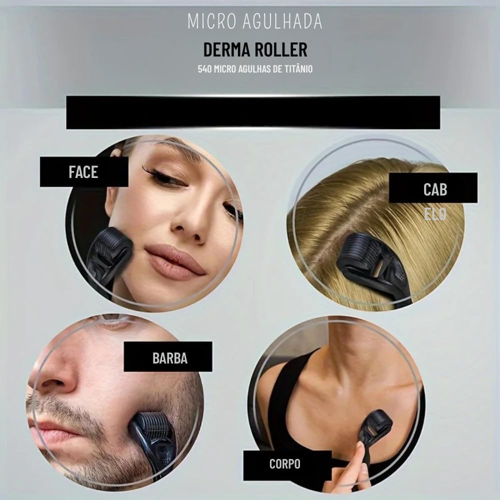 Derma Roller 0.5 Mm Para Rosto Couro Cabeludo E Corpo Microagulhamento Facial E Capilar Para Acne Manchas Rugas Crescimento De Cabelo E Rejuvenescimento Da Pele