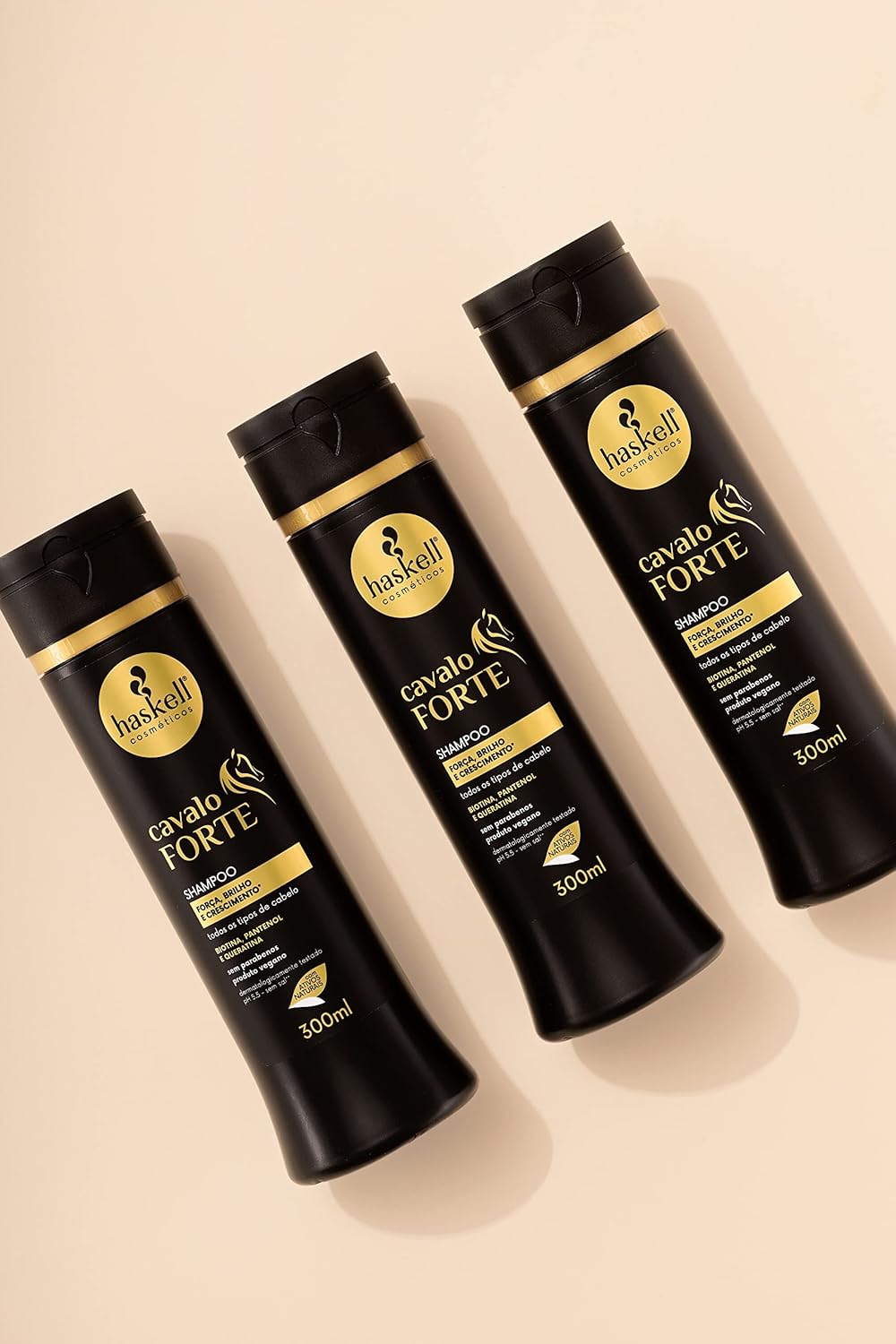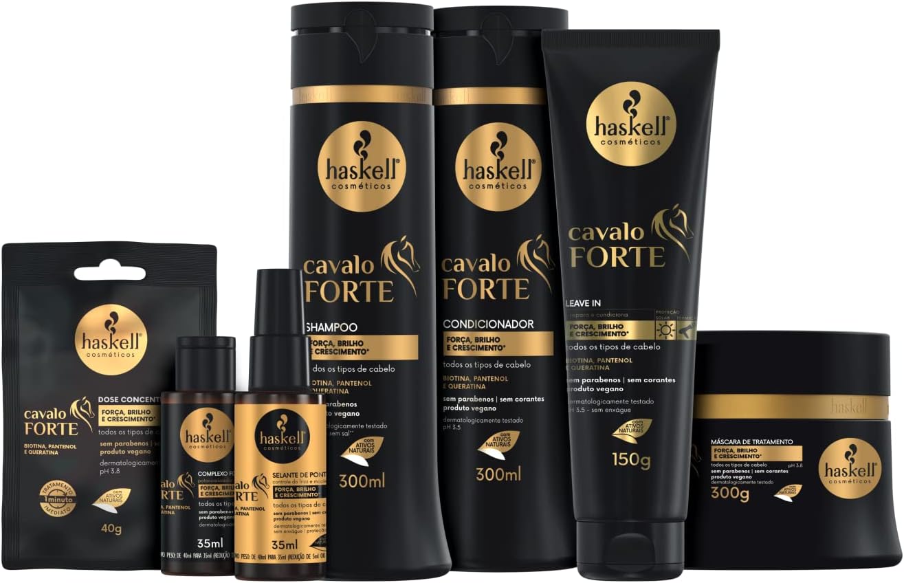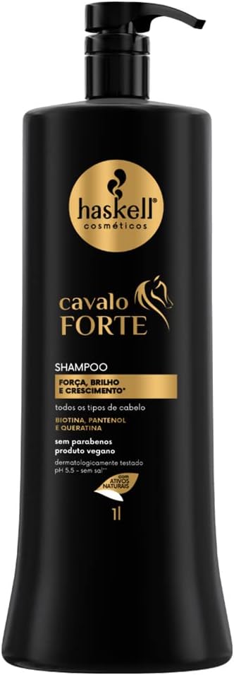 O shampoo cavalo forte reduz o risco de quebra, reconstrói e reforça a estrutura interna do fio, promovendo reparação profunda e recuperando a força natural dos cabelos. Modo de usar: aplique o shampoo cavalo forte nos cabelos molhados, massageando o couro cabeludo em suaves movimentos circulares. Enxágue bem. Se necessário, repita a aplicação. O uso contínuo da linha completa auxilia no crescimento.