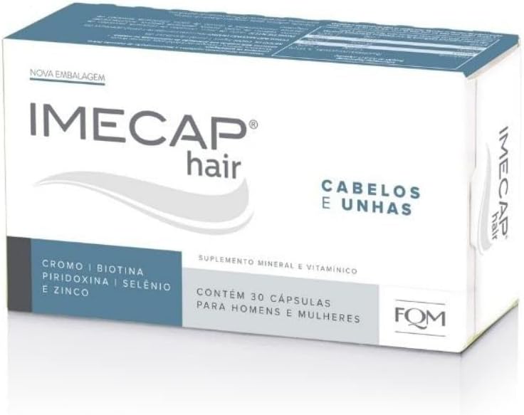 Imecap Hair é formulado com importantes nutrientes que atuam de dentro para fora, ajudando no crescimento saudável e fortalecimento dos cabelos e das unhas. Cápsulas de uso oral, indicadas para homens e mulheres, nutrem e fortalecem os fios, prevenindo a queda capilar.