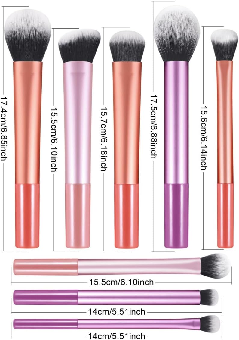 Kit Completo para Maquiagem Perfeita:Conjunto com 8 pincéis essenciais (pó líquido, corretivo, contorno, blush, sombra, etc) para todas as etapas da maquiagem. Cerdas ultra macias de fibra sintética não irritam a pele e distribuem produtos uniformemente, ideal para iniciantes ou profissionais.