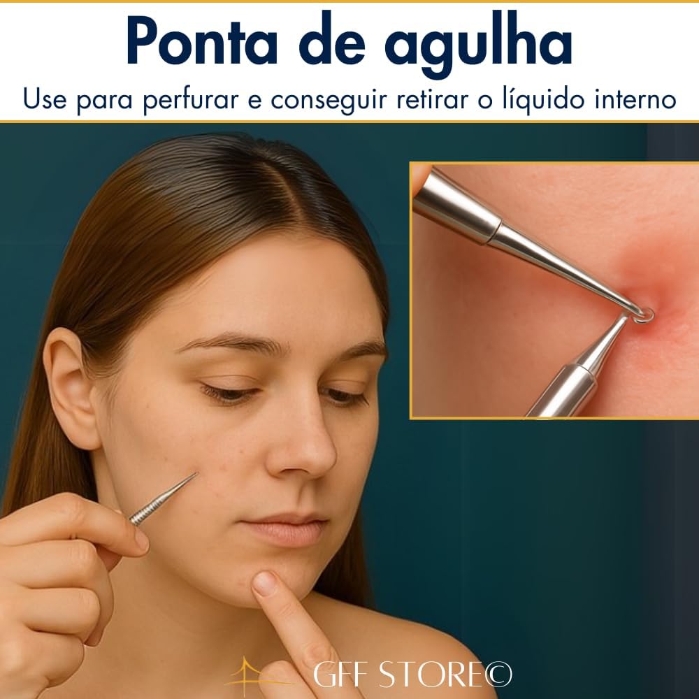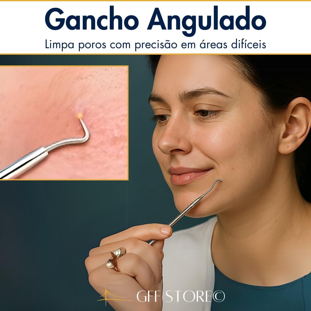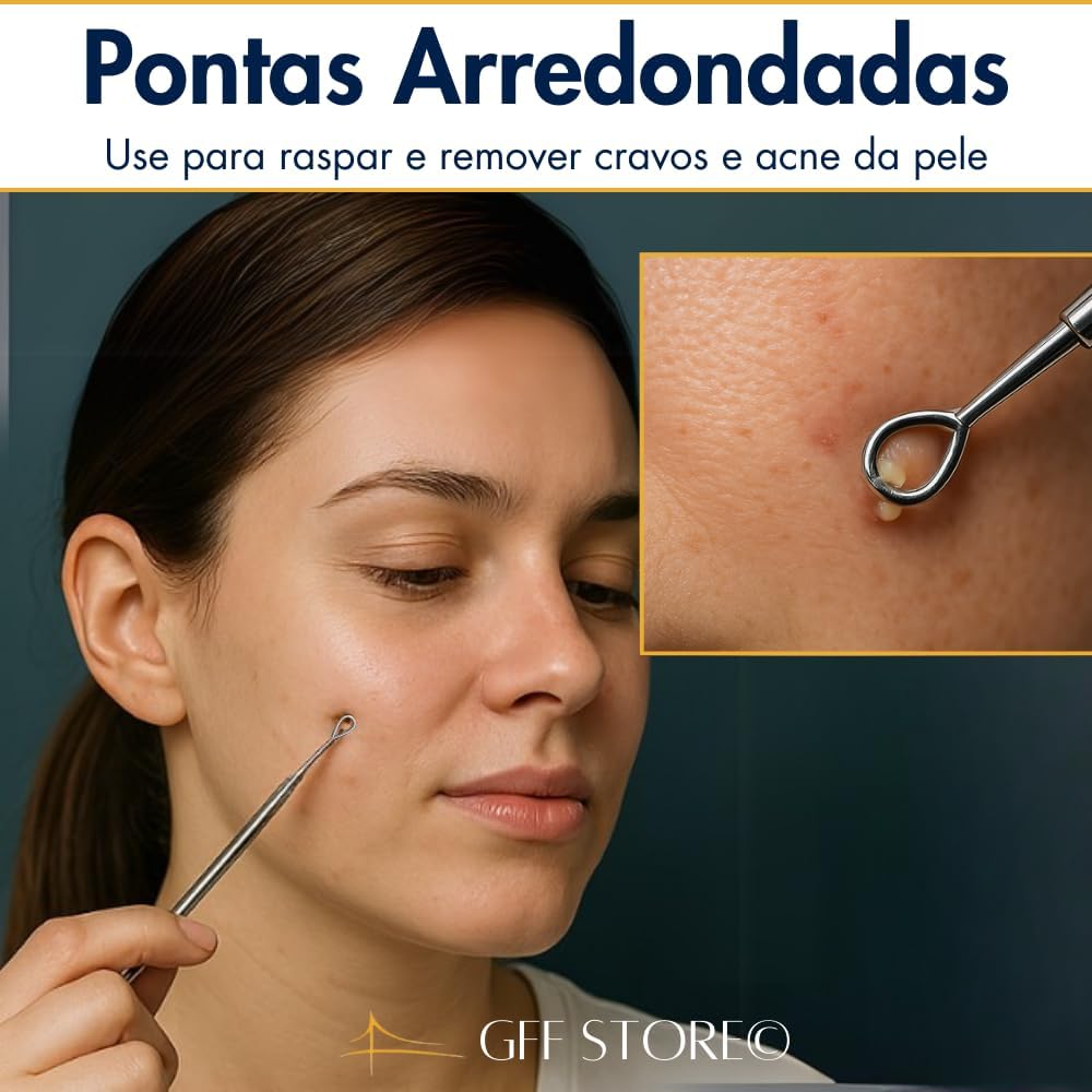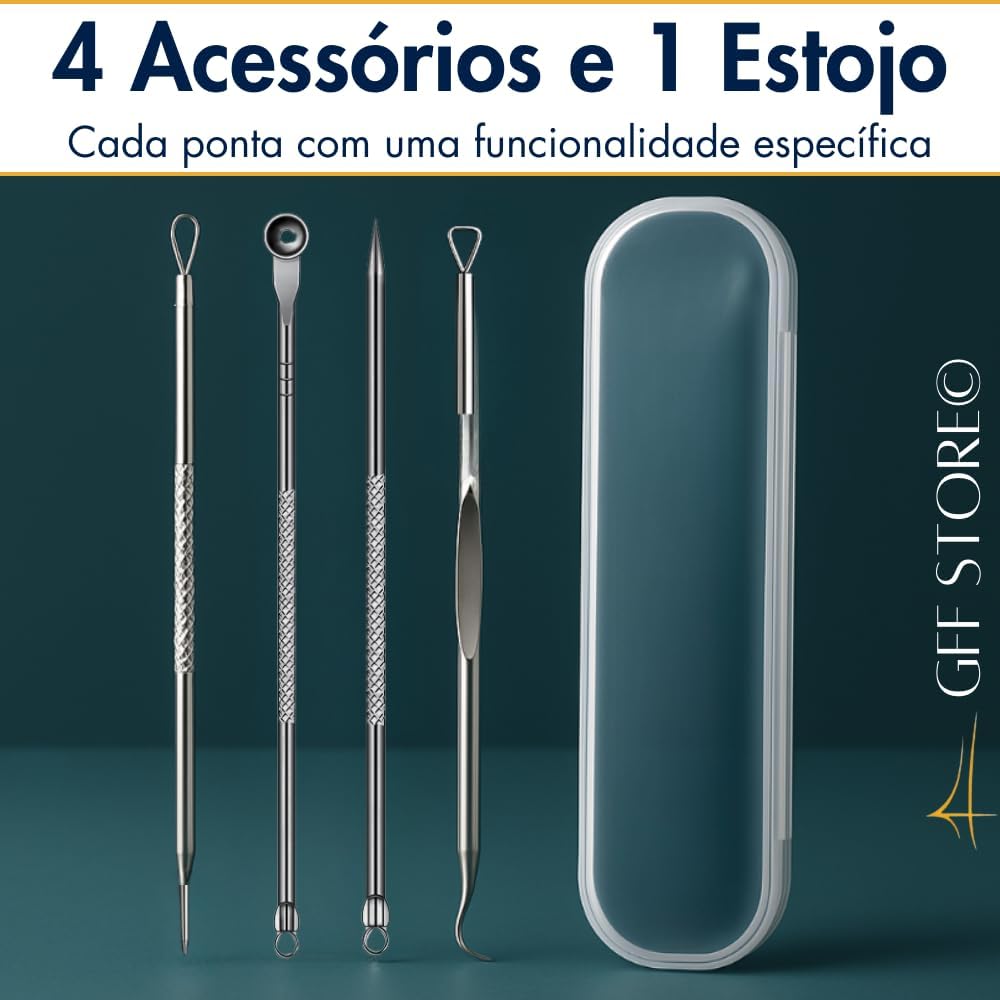 Remoção Precisa de Cravos e Espinhas: Kit profissional com 4 ferramentas de uso dermatológico, ideal para limpar profundamente sem agredir a pele. Remove cravos pretos, brancos e espinhas de forma segura e eficaz.