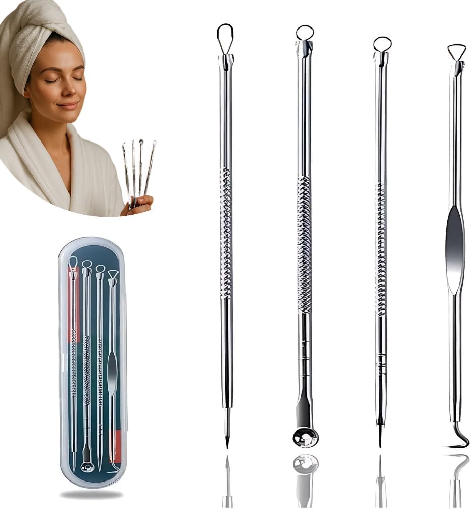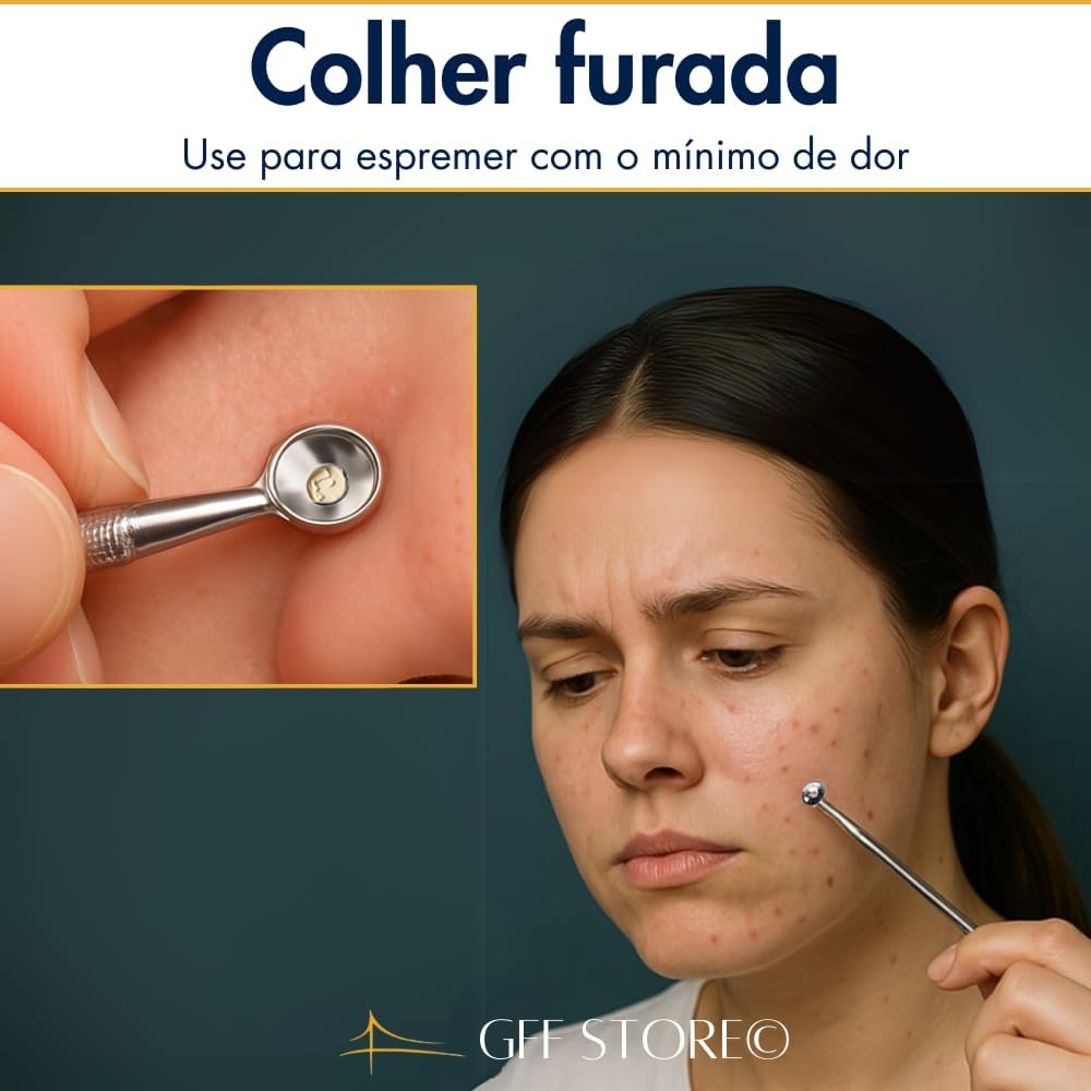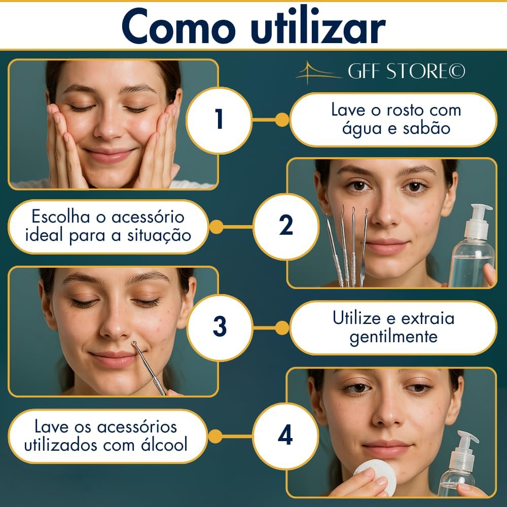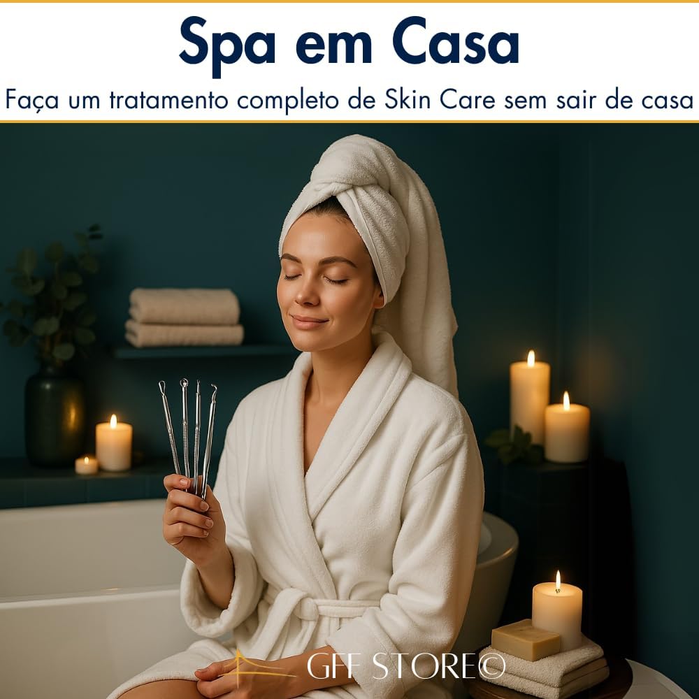 Remoção Precisa de Cravos e Espinhas: Kit profissional com 4 ferramentas de uso dermatológico, ideal para limpar profundamente sem agredir a pele. Remove cravos pretos, brancos e espinhas de forma segura e eficaz.
