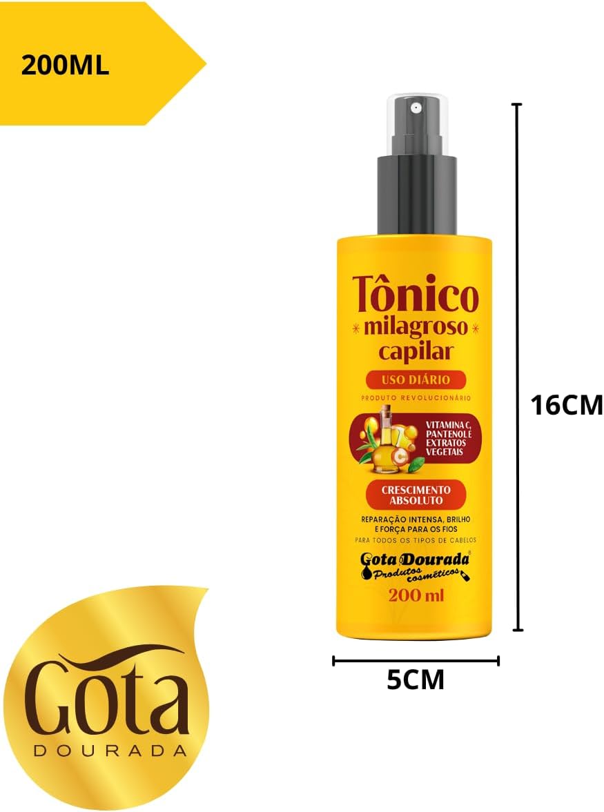 Tônico Capilar Milagroso 200ml Fortalecimento Raiz E Fios Tratamento Capilar – Gota Dourada