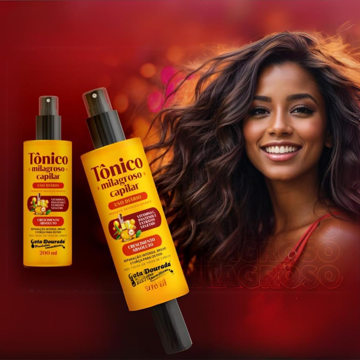Use todos os dias o Tônico Milagroso Capilar Gota Dourada e tenha as madeixas dos seus sonhos.